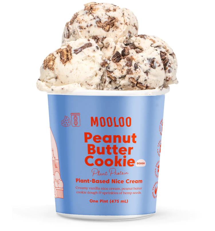 Creamy vanilla nicecream, infused with protein rich hemp seeds and chunky peanut butter cookie dough.