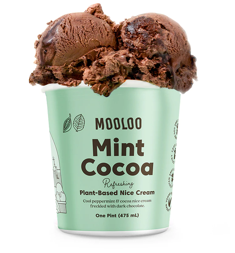 Peppermint & cocoa nice cream, sprinkled with organic dark chocolate shavings.